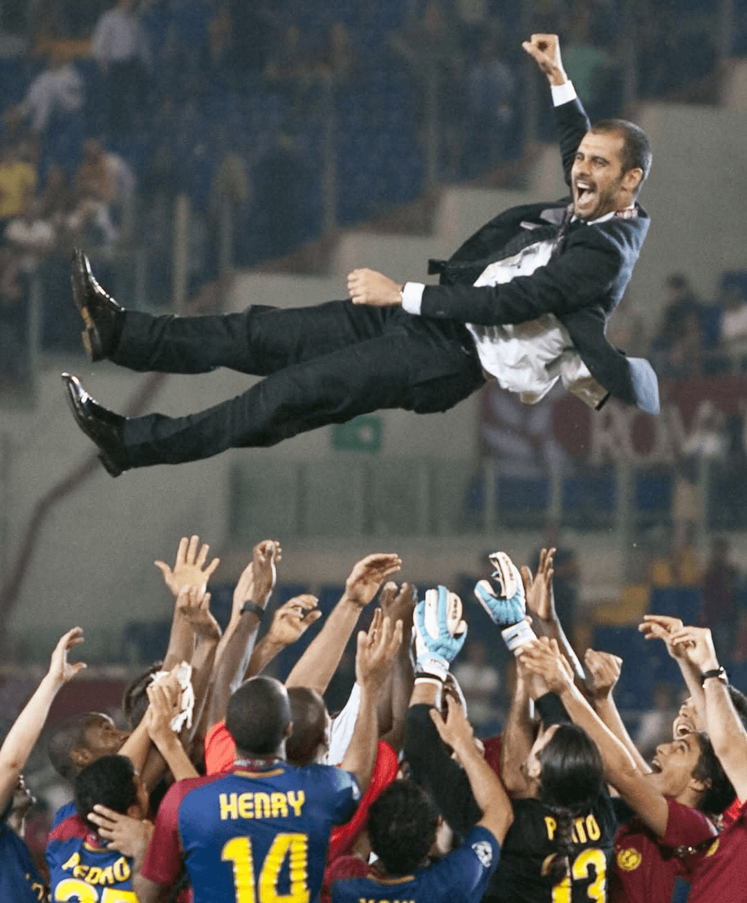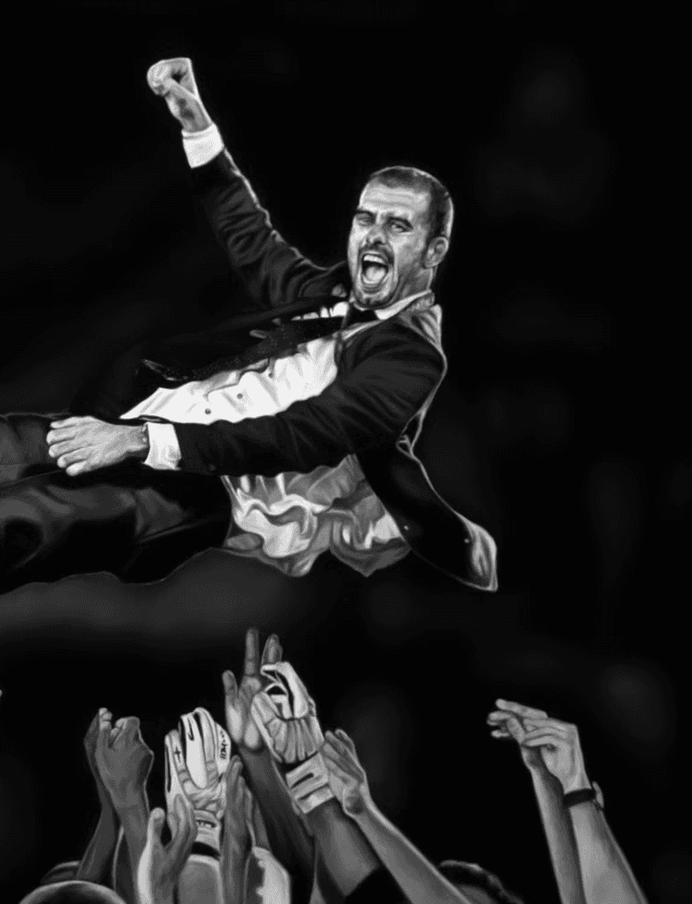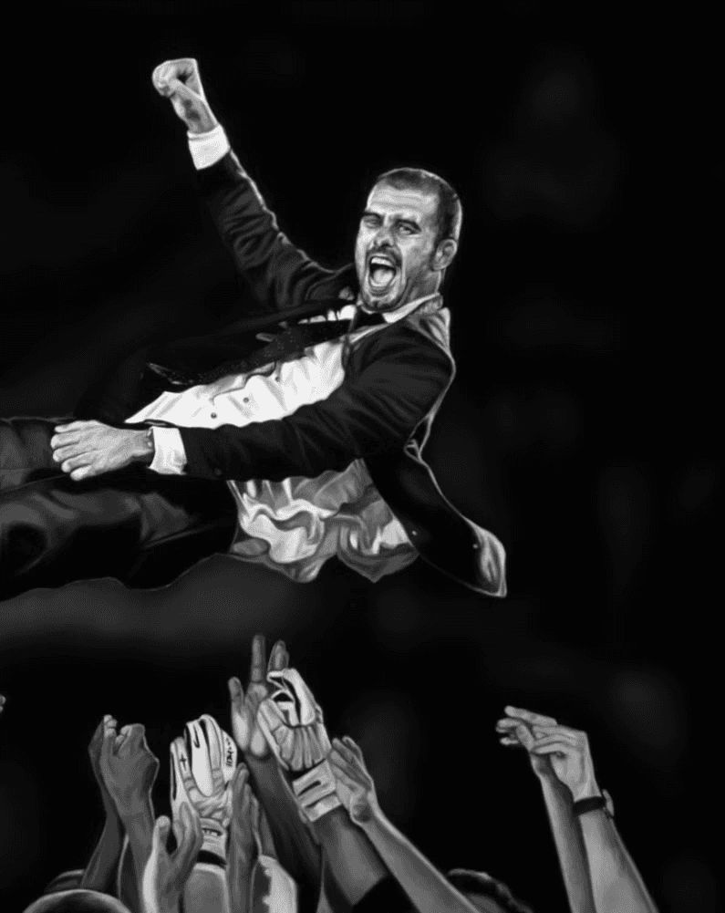 Enmig de l’eufòria, els jugadors alcen el seu tècnic. Pep Guardiola és enlairat pels mateixos que han interpretat el seu somni al camp. En aquell instant, no hi ha tàctiques ni paraules, només emoció pura. Un gest espontani que ho diu tot: confiança, gratitud i comunió absoluta entre entrenador i equip.