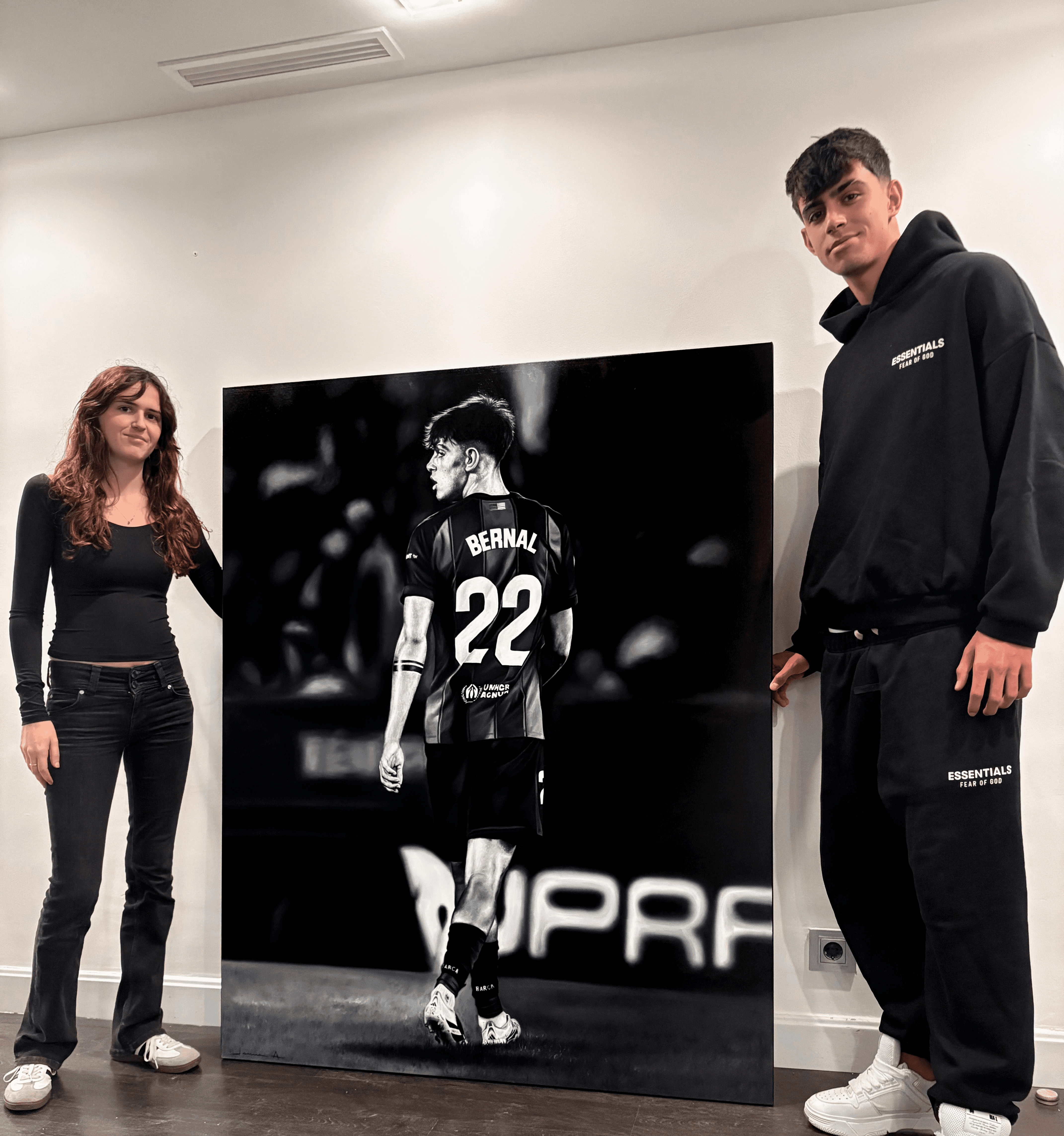Encargo personalizado de Marc Bernal. Obra que captura el momento en que Marc, con el dorsal 22, vuelve al campo tras una larga y dura lesión. Simboliza la fuerza, constancia y la superación personal que lo han llevado a regresar. Un instante emocionante que refleja su determinación y amor por el fútbol.